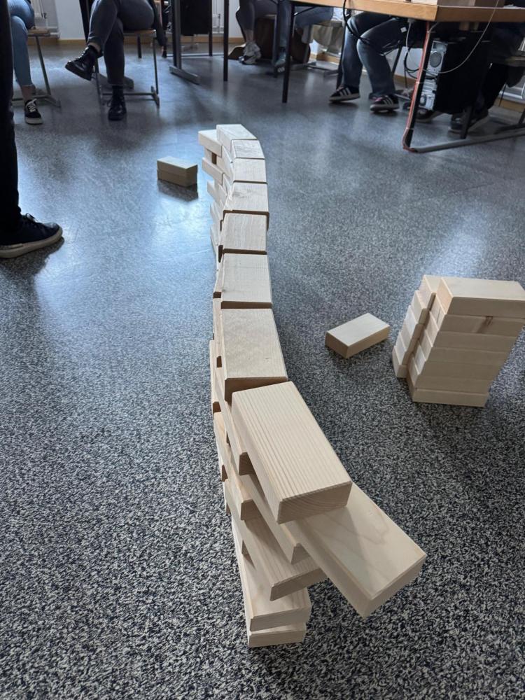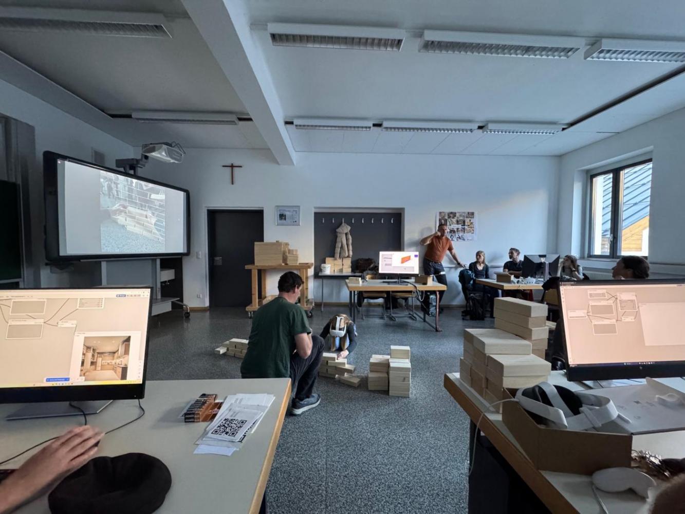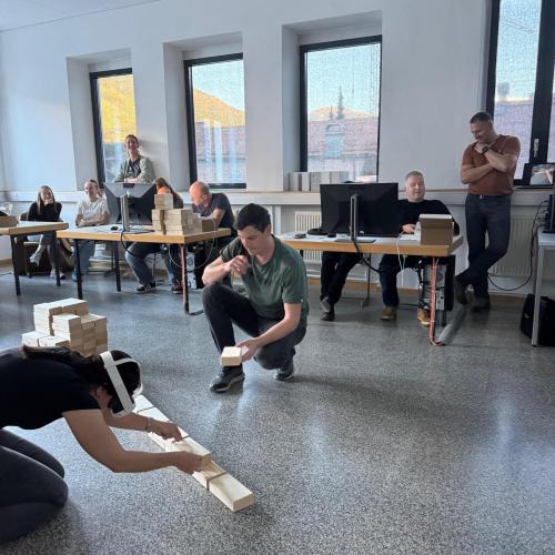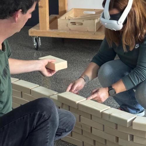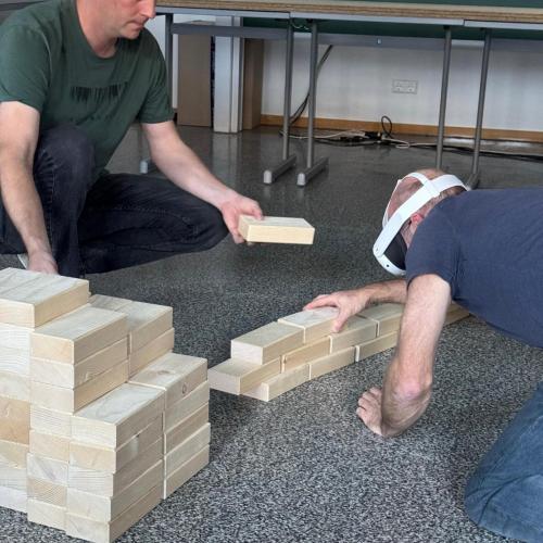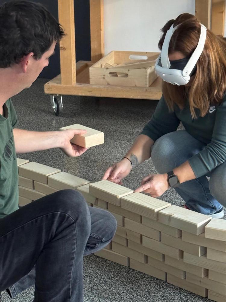 Kreative Lösungen für reale Problemstellungen mit einem wertvollen Einblick in die Arbeitswelt von morgen, so die Aufgabenstellung auch für die Lehrpersonen, die, ausgestattet mit einer Mixed Reality-Brille, eine in mehreren Dimensionen gekrümmte Mauer aus Holz-Ziegeln erbauen durften.