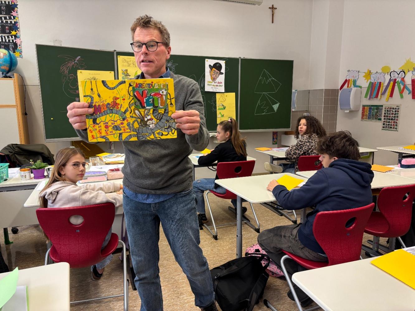 Im Rahmen eines zweitägigen Workshops nahm die Klasse 3i an einer kreativen Buchbind- und Schreibwerkstatt mit dem Tiroler Illustrator und Autor Christian „Yeti“ Beirer teil. Die Schüler:innen erhielten dabei einen spannenden Einblick in die Welt des Buchhandwerks: Sie nähten und banden mit Nadel und Faden ihr erstes eigenes Buch, gestalteten ein individuelles Buchcover und illustrierten die ersten Seiten.