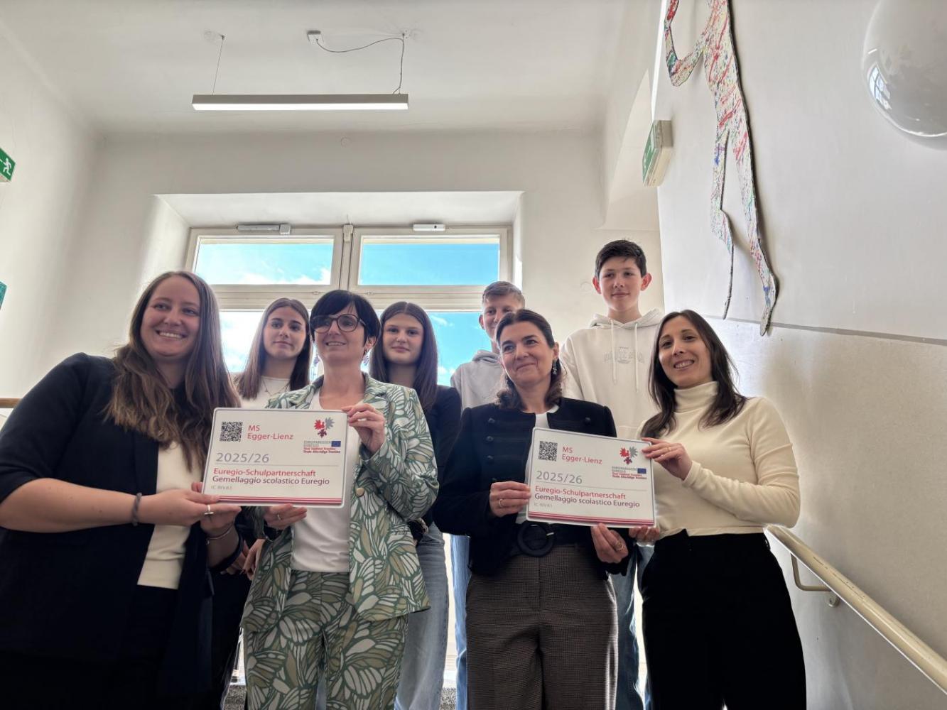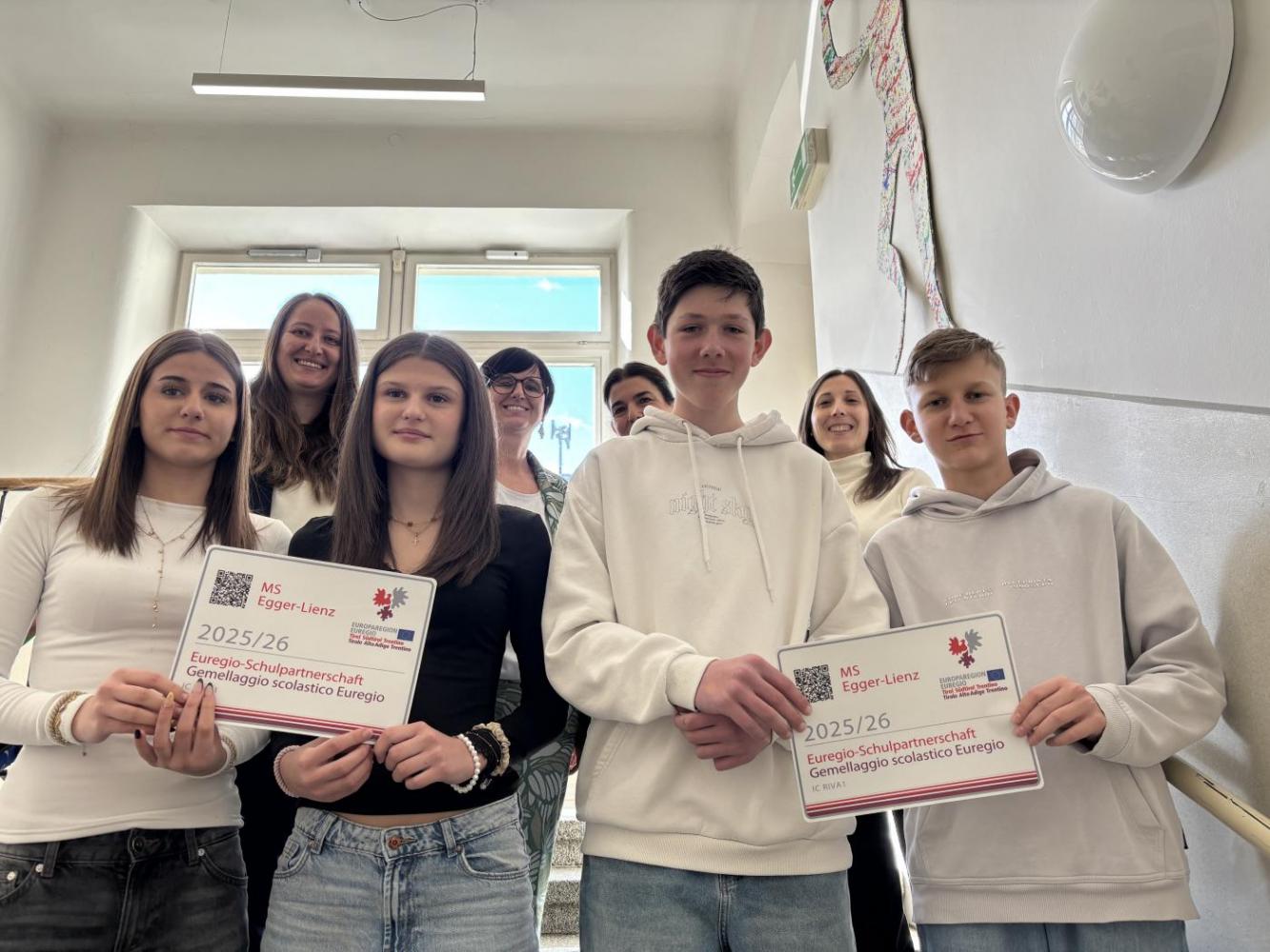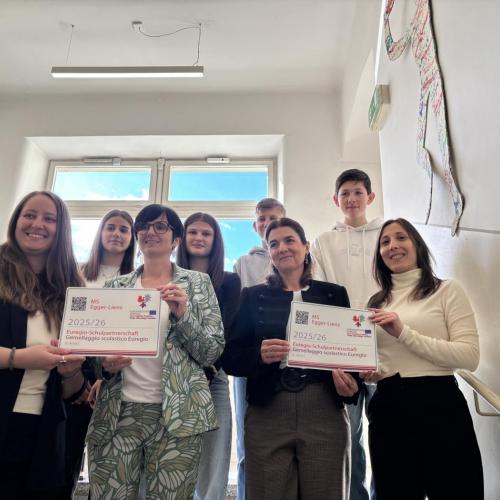Ein herzliches Danke, grazie und de gra an die Euregio Tirol-Südtirol-Trentino – für den spannenden und inspirierenden Vortrag und für die Auszeichnung unserer Schulpartnerschaft mit der Mittelschule „Damiano Chiesa“ in Riva del Garda.