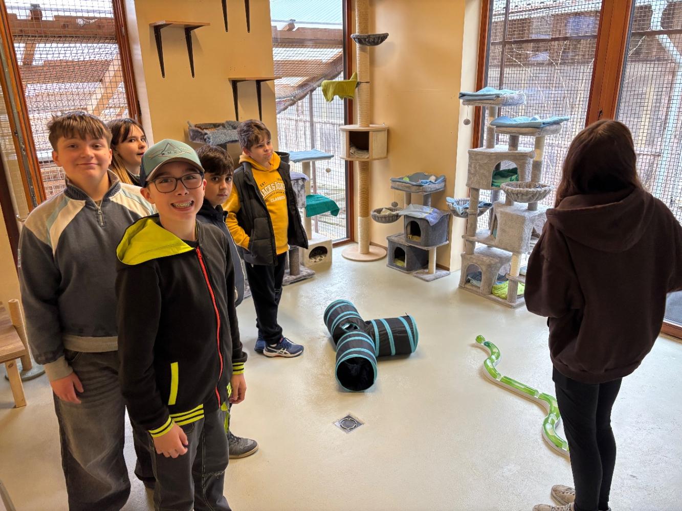 Als Danke für ihr Engagement wurden die Schülerinnen und Schüler im Tierheim herzlich empfangen. Nach einer stärkenden Jause mit Getränken durften die Kids Leckereien an die Vierbeiner verteilen, begleitet von liebevollen Streicheleinheiten.