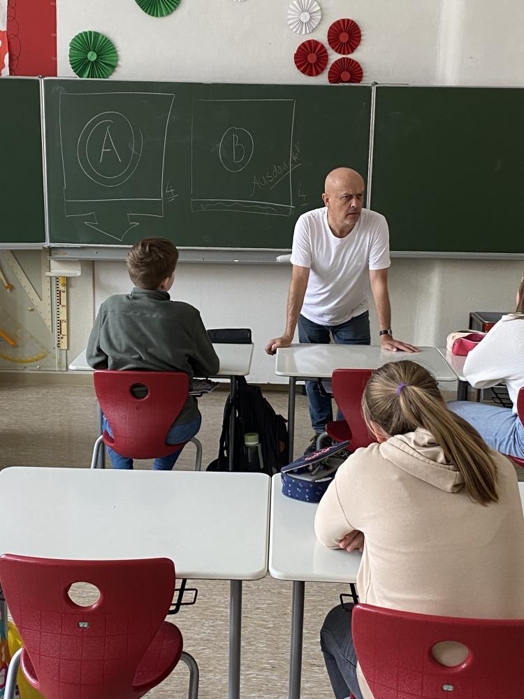Güni Noggler zu Besuch an der MS Egger-Lienz