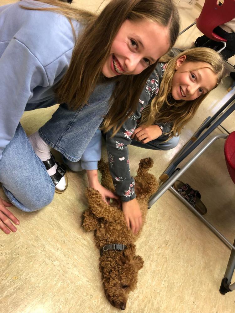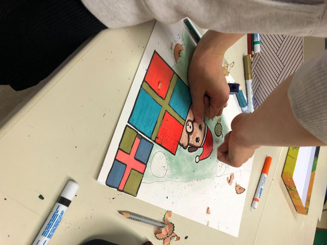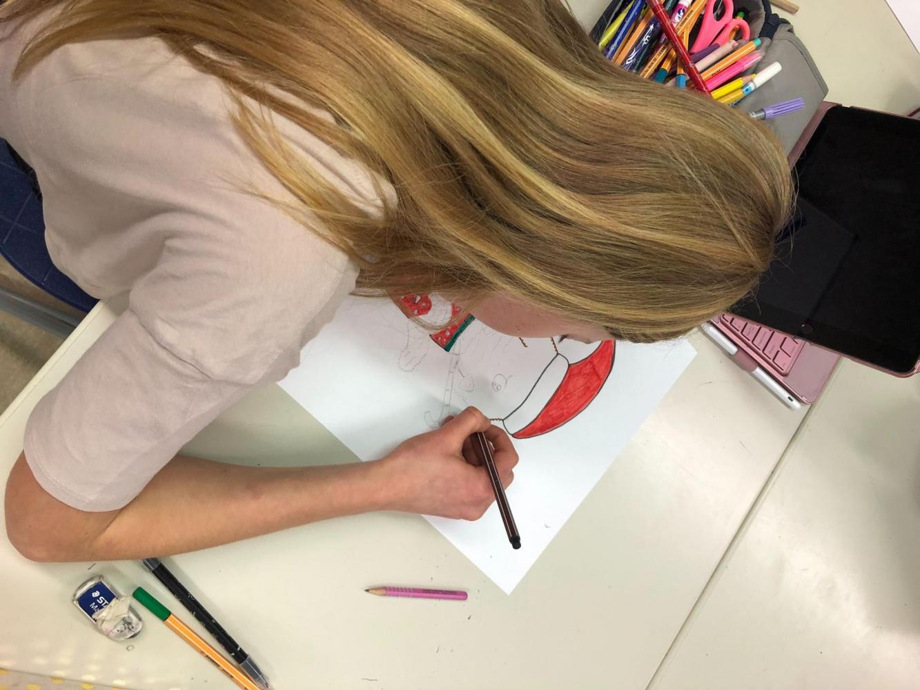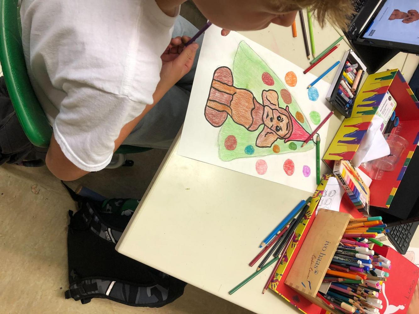 Im Zuge ihres vergangenen KuG-Unterrichts durften die SchülerInnen der 3s einen Überraschungsgast empfangen. Der braune Zwergpudel diente als Model und wurde weihnachtlich inszeniert - zwischen Malen und kreativem Gestalten blieb auch noch ausreichend Zeit mit Hugo zu kuscheln und ihn zu streicheln.