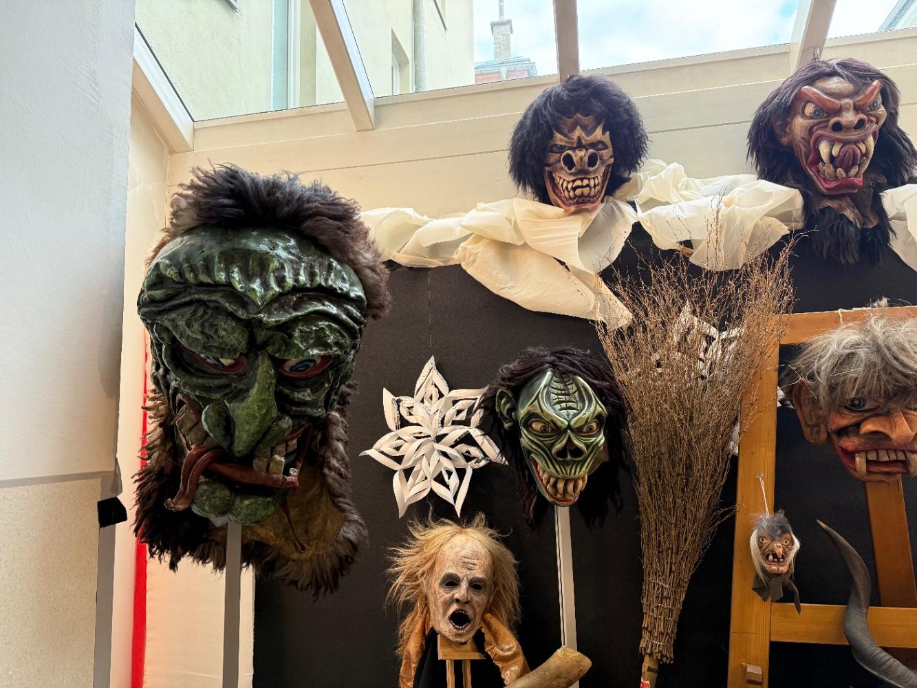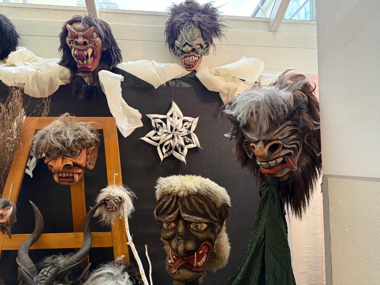 Auch dieses Jahr können die Schüler:innen der MS Egger-Lienz Krampuslarven verschiedenster Schnitzer bestaunen.