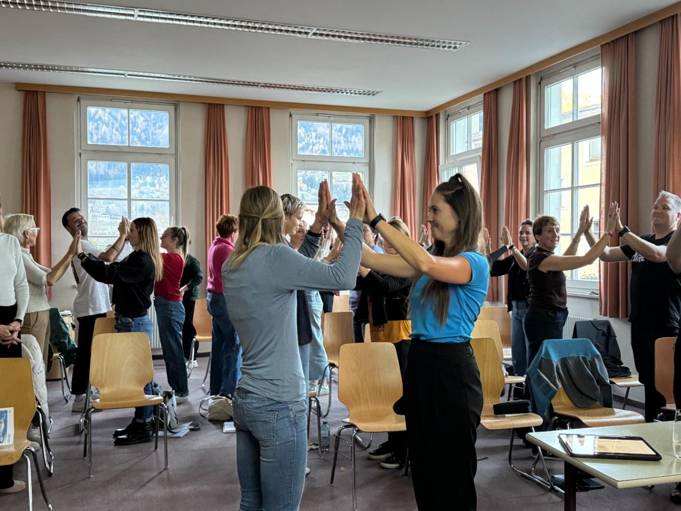 Nach diesem theoretischen Input wurde es für das Lehrerteam praktisch: Gemeinsam wurden einfache Bewegungsübungen ausprobiert, die sich leicht in den Unterricht integrieren lassen. Das Fazit: Neue Bewegungsabläufe fördern nicht nur die geistige Fitness, sondern machen auch richtig Spaß.