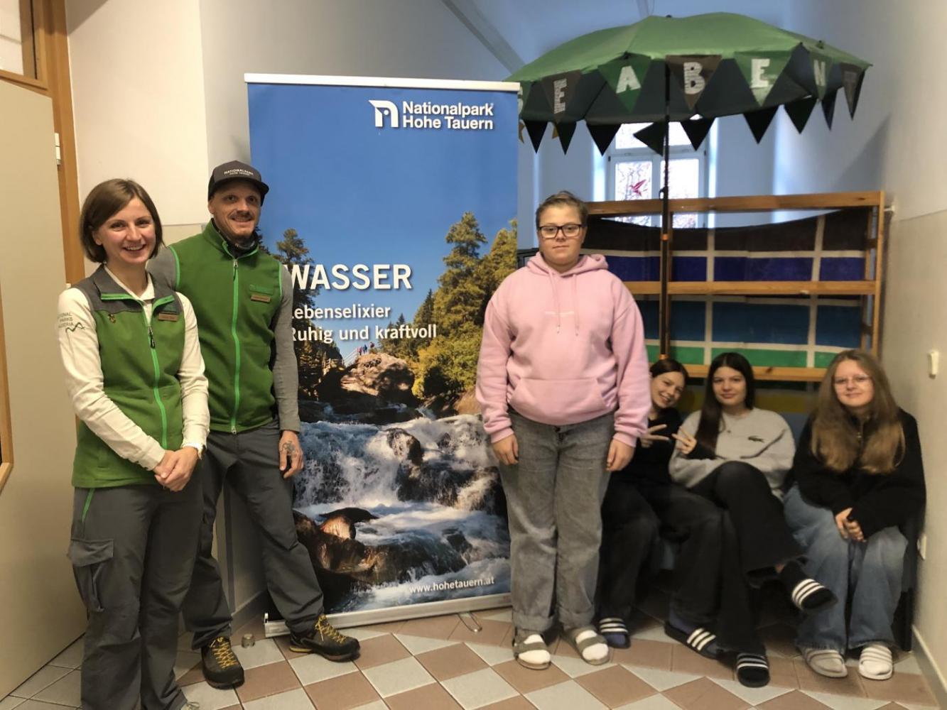 Die Schüler: innen der 3i-Klasse erforschten am Freitag Vormittag gemeinsam mit den Nationalparkrangern Armin und Caroline das faszinierende Element Wasser. Im Rahmen des Projekts „Wasser verstehen – Natur erleben – Verantwortung übernehmen“ mit dem Nationalpark Hohe Tauern erlebten sie an verschiedenen Stationen, wie „der Klang von Wasser“, „magischer Handschuh“und „Wolkenrezept“, was Wasser alles kann und welche Bedeutung es für das Leben von Tieren, Pflanzen und uns Menschen hat.