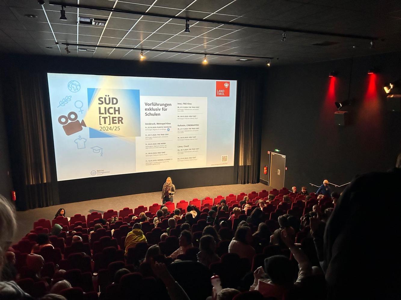 Im Rahmen der Filmreihe "Südlich[t]er" – einer Initiative des Landes Tirol – besuchten die Klassen 1s, 2i, 2a und 3i gemeinsam mit ihren Lehrpersonen das Kino, um den Film The True Cost zu sehen. Der Film beleuchtet die dunklen Seiten der Fast Fashion-Industrie und zeigt nicht nur die verheerenden sozialen Auswirkungen billig-produzierter Kleidung auf die Menschen, die in „Sweatshops“ arbeiten, sondern auch die Belastung der Modeproduktion für unsere Umwelt.