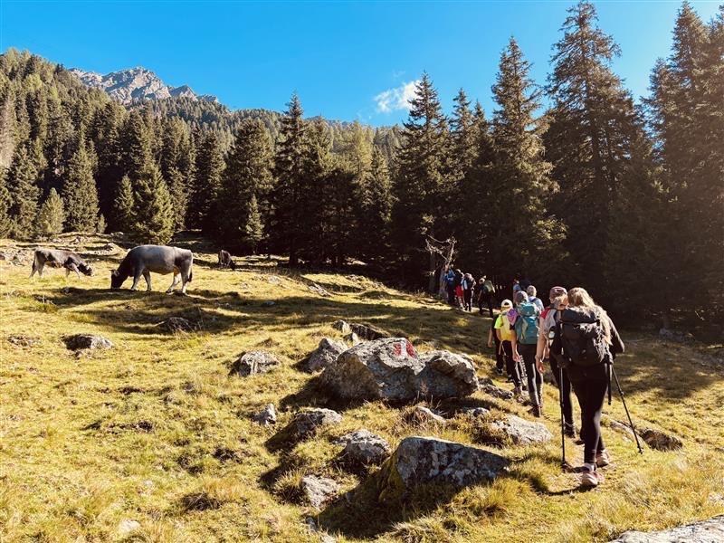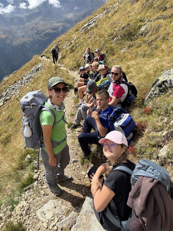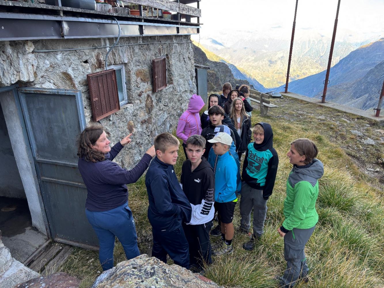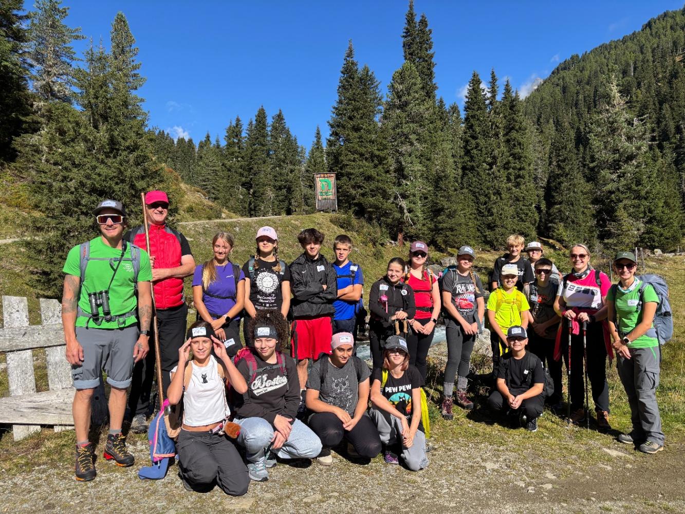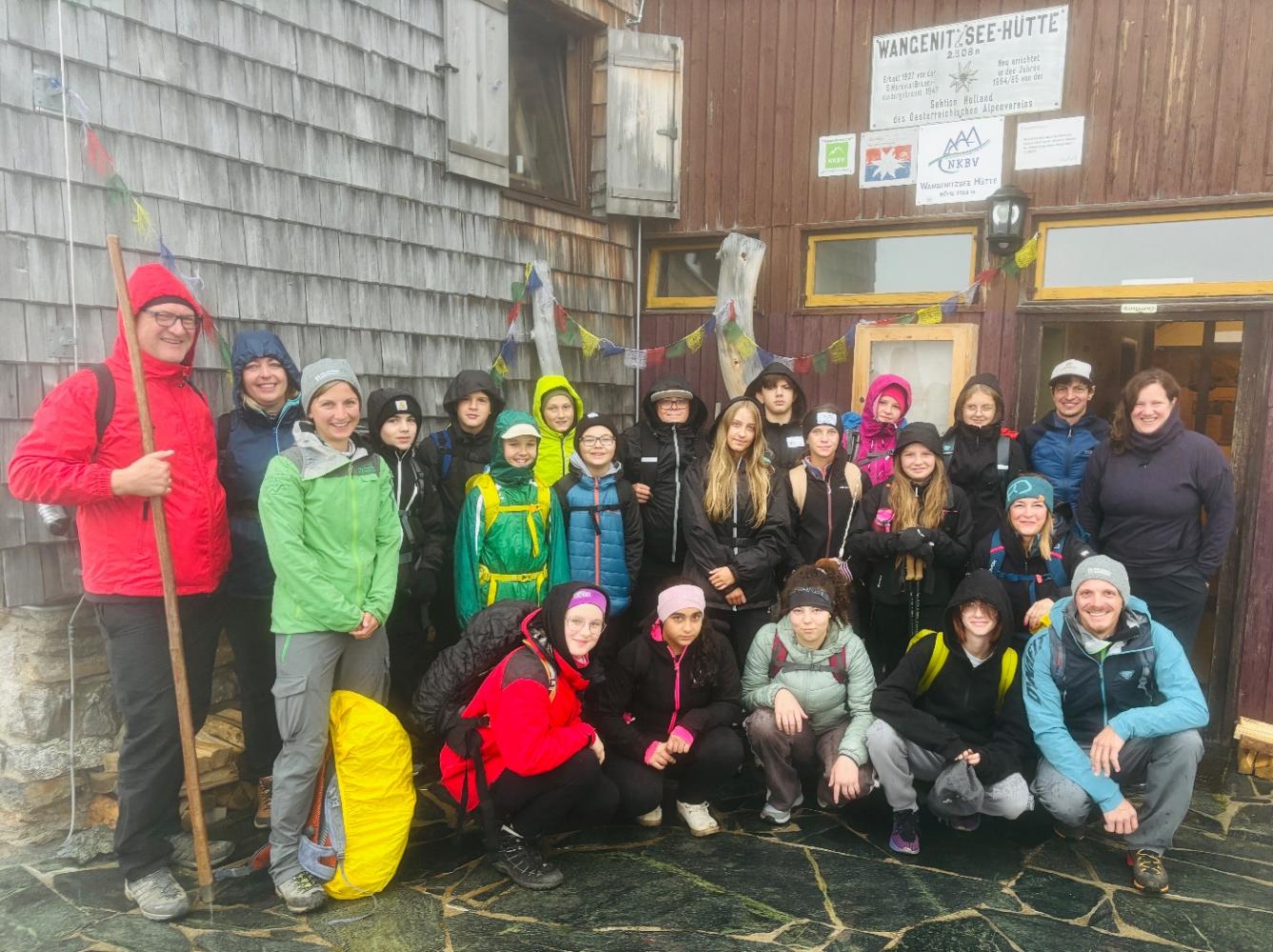 Und nun auf ins Abenteuer. Der Auftakt des Projekts fand hoch oben in den Bergen statt: Eine 2-tägige Wanderung führte die 3i-Klasse zur Wangenitzseehütte. Die Tour war nicht nur ein Abenteuer, sondern auch eine wertvolle Lektion in Bezug auf die Problematik der Wasserversorgung in hochalpinen Regionen. Auf der Hütte angekommen, erklärte uns Magdalena die schwierige Situation: Bis zum Abschmelzen des Gletschers (Petzeck) war die Hütte über den abfließenden Bach mit Wasser versorgt. Seitdem kommt es jedoch häufig zu Wasserknappheit. Das Problem wird noch verstärkt, da die Stromversorgung der Hütte ebenfalls vom gleichen Bach durch ein Kleinwasserkraftwerk abhängt. Das Wasser wird also zwischen Stromerzeugung und Wasserversorgung aufgeteilt. Mit der Installation einer PV-Anlage im Sommer 2025 konnte die Situation etwas verbessert werden. Auf der Hütte heißt es also Strom sparen, um die Wasserversorgung zu entlasten. Allerdings gibt es ohne Strom auch kein Wasser, da es über eine UV-Filteranlage gepumpt wird, bevor es aus dem Hahn kommt. Der Wasserspeicher alleine kann also keine Lösung bieten, wenn keine Stromerzeugung stattfindet – etwa, wenn der Bach austrocknet und die PV-Anlage nachts keinen Strom liefert. Diese Tatsache verdeutlichte den Schüler:innen auf eindrucksvolle Weise, wie wichtig und unersetzlich Wasser in unserem Alltag und für die Natur ist. Mit einem tieferen Verständnis für Wasser und einem gestärkten Bewusstsein für die Bedeutung des Umweltschutzes kehrten wir gesund, glücklich und voller Eindrücke von diesem außergewöhnlichen Erlebnis zurück.